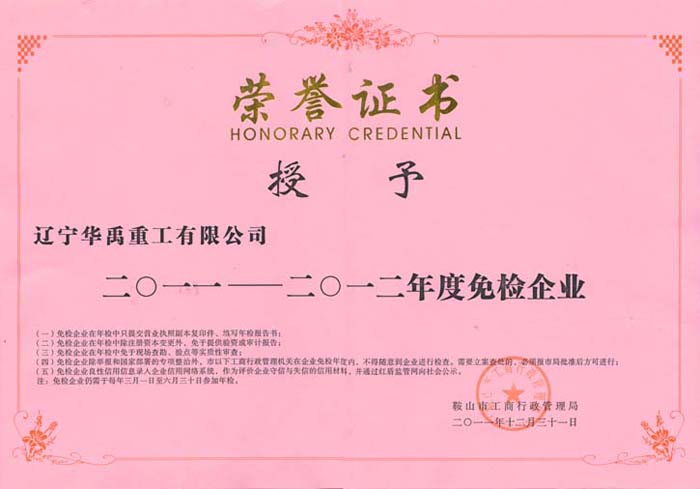免检企业证书